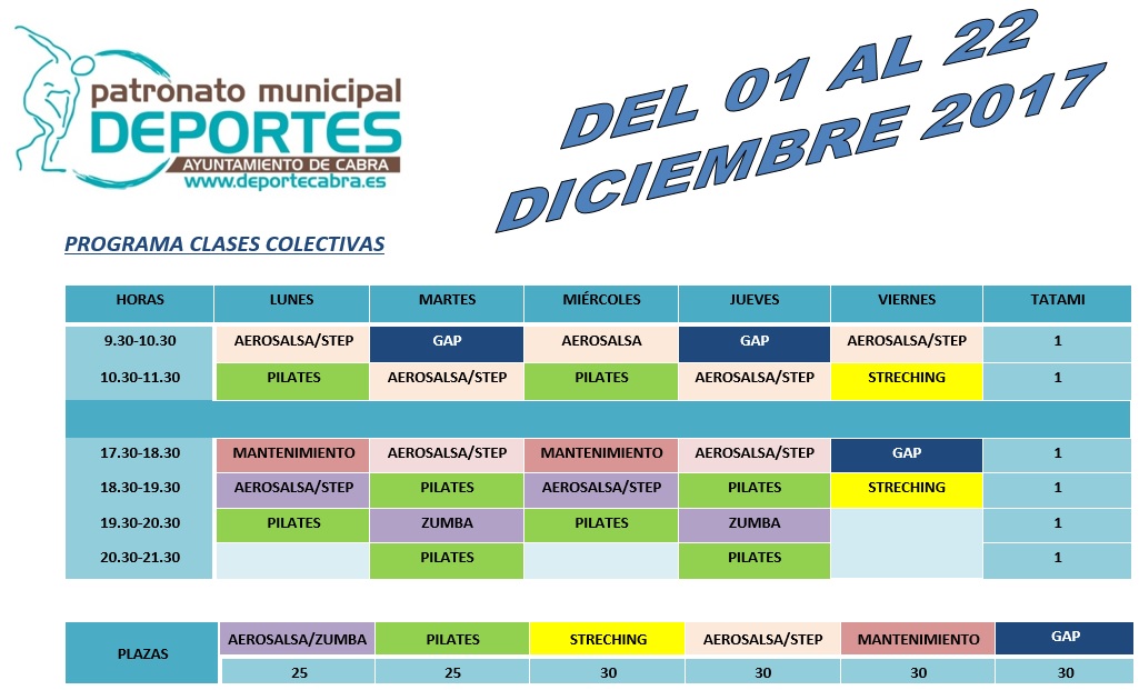 La programación de las actividades seguirá su ritmo en este mes, aunque descansaremos durante la Navidad, pero hasta entonces aún puedes inscribirte, ya que quedan plazas libres tanto en las Clases Colectivas como en el Ciclo Indoor.
