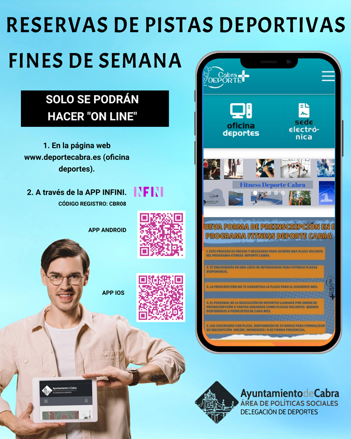 Si eres de los que practicas actividad deportiva con amigos durante el fin de semana y quieres asegurarte la reserva de las pistas, aquí te dejamos una descripción de cómo hacerlo, cómodo y sencillo en muy pocos pasos. Utiliza los códigos QR, según el dispositivo con el que vayas a realizar la reserva y a disfrutar.