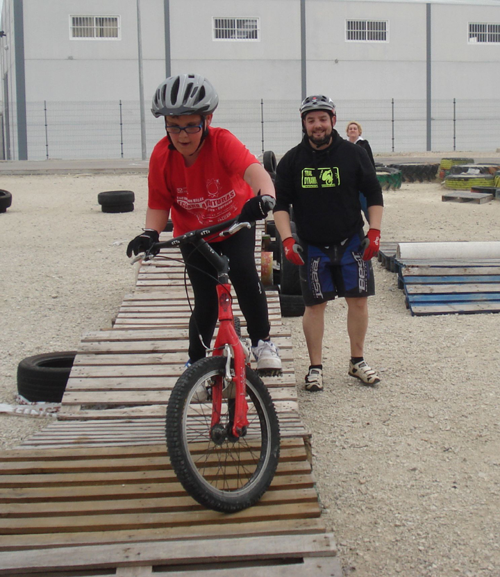 Nuestro ya amigo Rafa, es un piloto de Biketrial que ha participado en infinidad de carreras y campeonatos de esta espectacular disciplina del ciclismo, llegando a proclamarse Campeón de España en su categoría además de tener en su haber varios Campeonatos Zona Sur de Biketrial (Andalucía y Extremadura) y un Sub-Campeonato del Mundo. Rafa llevó su espectáculo en bicicleta incluso hasta el programa de Telecinco “Tu si que Vales” . Rafa estuvo espectacular con su bicicleta, subiendo de una forma facilísima todos los osbtáculos que tenemos en la zona trialera de la pista de ciclismo y dejando boquiabiertos a todos los niños. Luego estuvo a pie de zona con ellos, enseñandoles trucos, técnicas y maneras de pasar los distintos pasos dificiles que el mismo les iba planteando. Nuestro amigo también quiso probar nuestra pista de BMX en la que recordó sus inicios en esto de las bicis que precisamente fueron a lomos de una pequeña bici de bicicroos. Tras las muchas fotos que se hizo con todos, las muchas risas que se dio con los niños y las muchas satisfaciones que sabemos de seguro se llevó en su interior, nuestro amigo dió por concluida su visita pero antes los niños le quisieron regalar una camiseta de nuestra escuela que prometio ponerse además de un bonito aplauso de agradecimiento por su simpatía, al que se sumaron todos los padres y madres de los niños que no quisieron perderse la vista de Rafa.