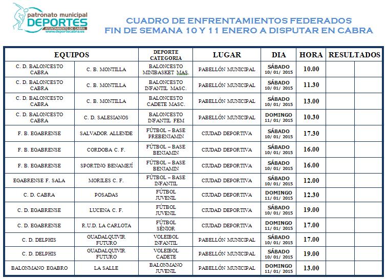 Este próximo fin de semana viviremos en las instalaciones deportivas de nuestra Ciudad un elevado número de competiciones federadas. Tal es así que se batirá el récord de encuentros federados en Cabra en sólo un fin de semana y lo más importante es que se conseguirá gracias a la suma de varias modalidades deportivas. Balonmano, Voleibol, Baloncesto y Fútbol a través de sus respectivos clubes intentarán conseguir un buen inicio de año.