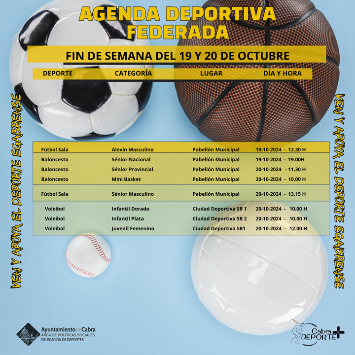 Aunque algunos de nuestros Clubes deportivos, comenzaron hace algunas semanas y ya han disputado varios encuentros en nuestras instalaciones, será a partir de esta semana cuando vuelvan a la actividad, coincidiendo varios de ellos y ocupando gran parte del cuadrante de fin de semana.