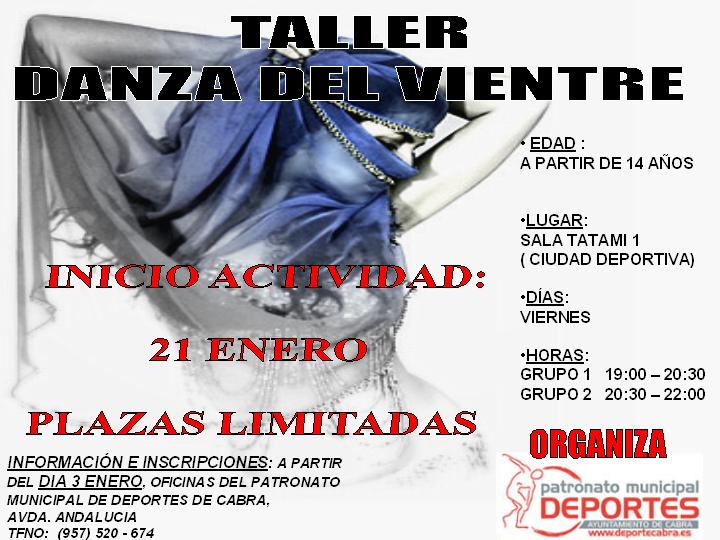 El próximo día 21 de Enero se retoma la actividad en el Taller de Danza del Vientre que con gran éxito se ha venido celebrando durante los pasados meses de octubre y noviembre de 2010. La Sala de Tatami I, volverá a acoger este Taller, que tendrá características similares al que se ha desarrollado con anterioridad.