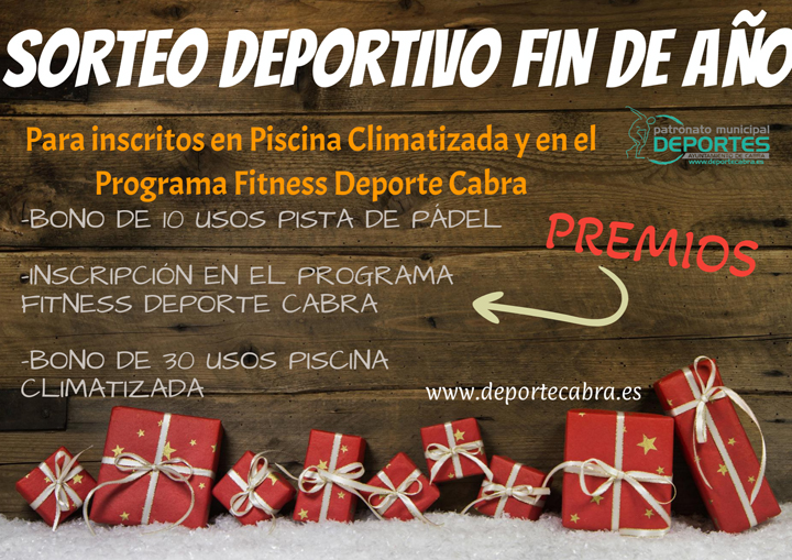 Aquellos deportistas inscritos durante el mes de Diciembre de 2022 en los Programas Fitness Deporte Cabra o Piscina Climatizada, podrán participar en el Sorteo consistente en: