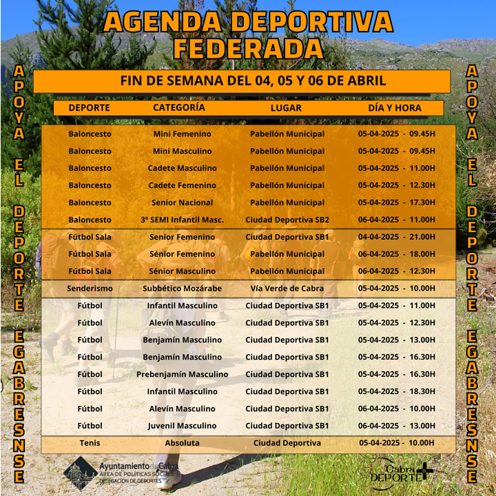 El fin de semana previo a Semana Santa llega cargado de enfrentamientos importantes sobre todo en competiciones federadas. Tanto Baloncesto como Fútbol, comienzan desde hoy a medirse en sus duelos deportivos y que en diferentes categorías seguirán mañana y el Domingo.