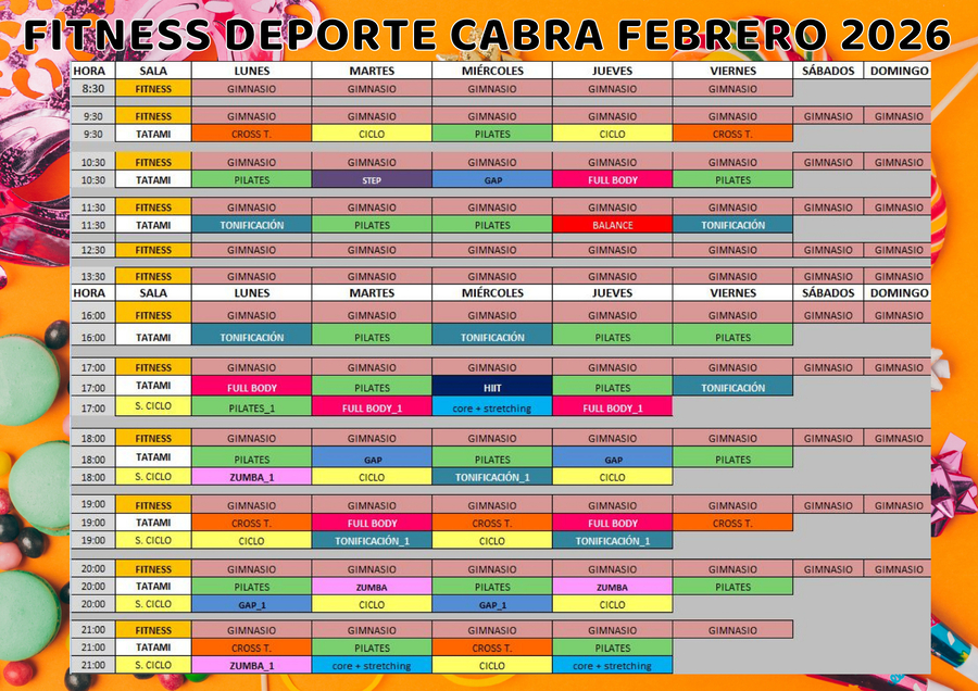 1. Fitness Deporte Cabra es un programa deportivo que puso en marcha la Delegación Municipal de Deportes de Cabra a partir de Enero de 2021. En él, podrás hacer deporte de lunes a viernes pero siempre previa reserva.